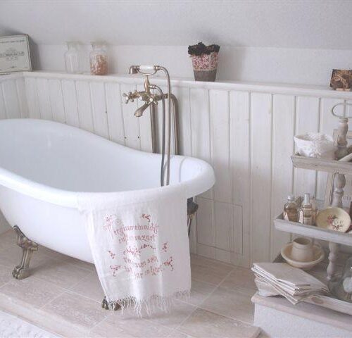Il bagno è il luogo dove concediamo a noi stessi di creare un paradiso nel quale sentirsi pienamente riposati e rilassati. Piastrelle bianche e sanitari di porcellana, rubinetti cromati dal gusto retrò, ed una vasca da bagno profonda che ti permetta di stenderti ed immergerti