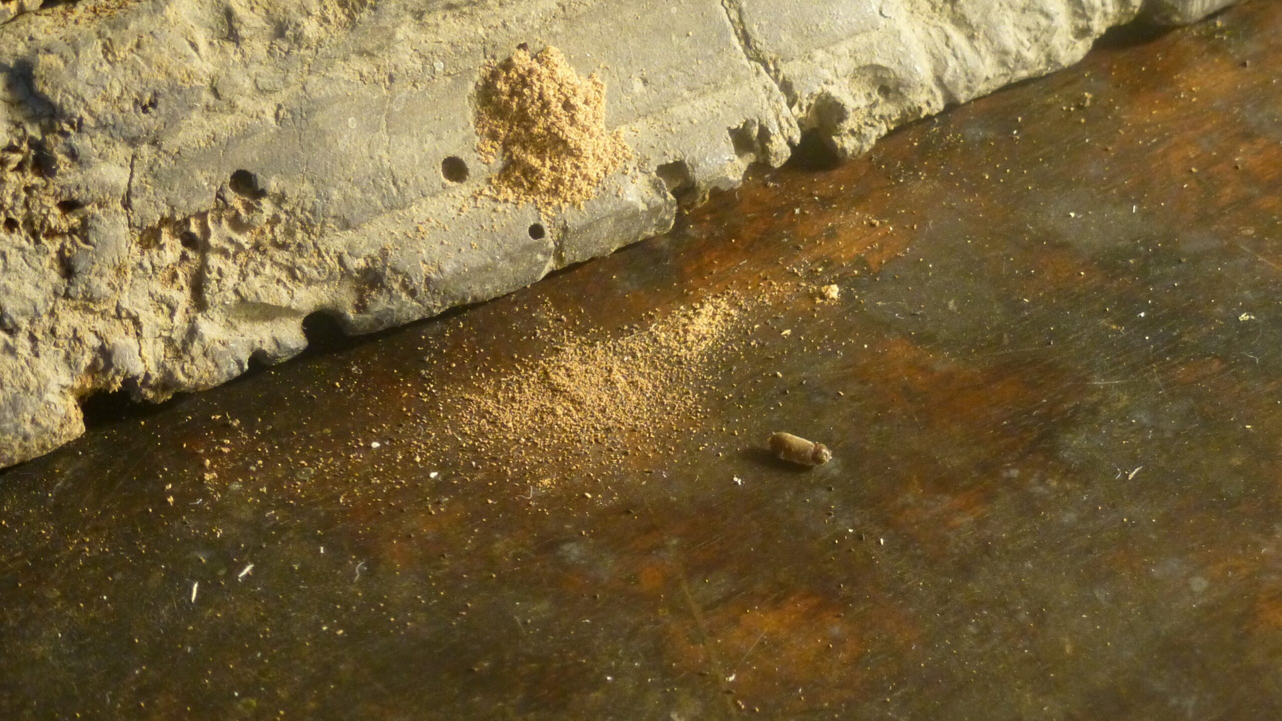Il primo segnale è la comparsa del rosume, una polvere chiara che troviamo vicino ai fori sul legno. Quei fori sono le uscite degli insetti adulti, che completano il loro ciclo vitale sfarfallando fuori dal mobile. Ma attenzione: la parte pericolosa non è il tarlo adulto, bensì la larva che rimane all’interno anche per alcuni anni, nutrendosi del legno.
